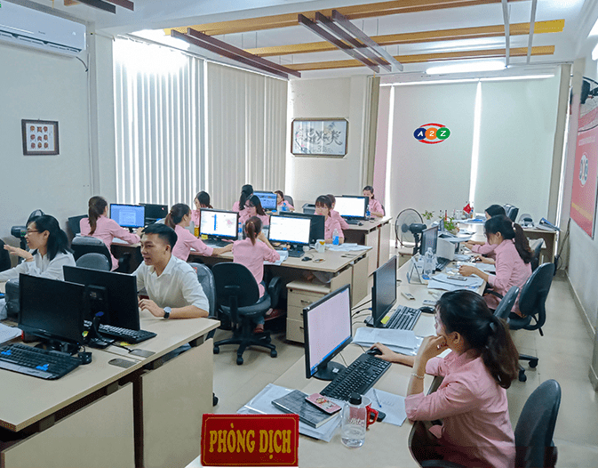 Trong số các công ty dịch thuật, Dịch thuật A2Z cung cấp hoạt động dịch thuật với quy mô rộng khắp, đáp ứng tất cả các tài liệu ở các chuyên ngành khác nhau, độ chính xác cao, kinh nghiệm dịch sâu rộng, đặc biệt là đội ngũ biên phiên dịch chuyên nghiệp tốt nghiệp từ các chuyên ngành ngôn ngữ khác nhau.